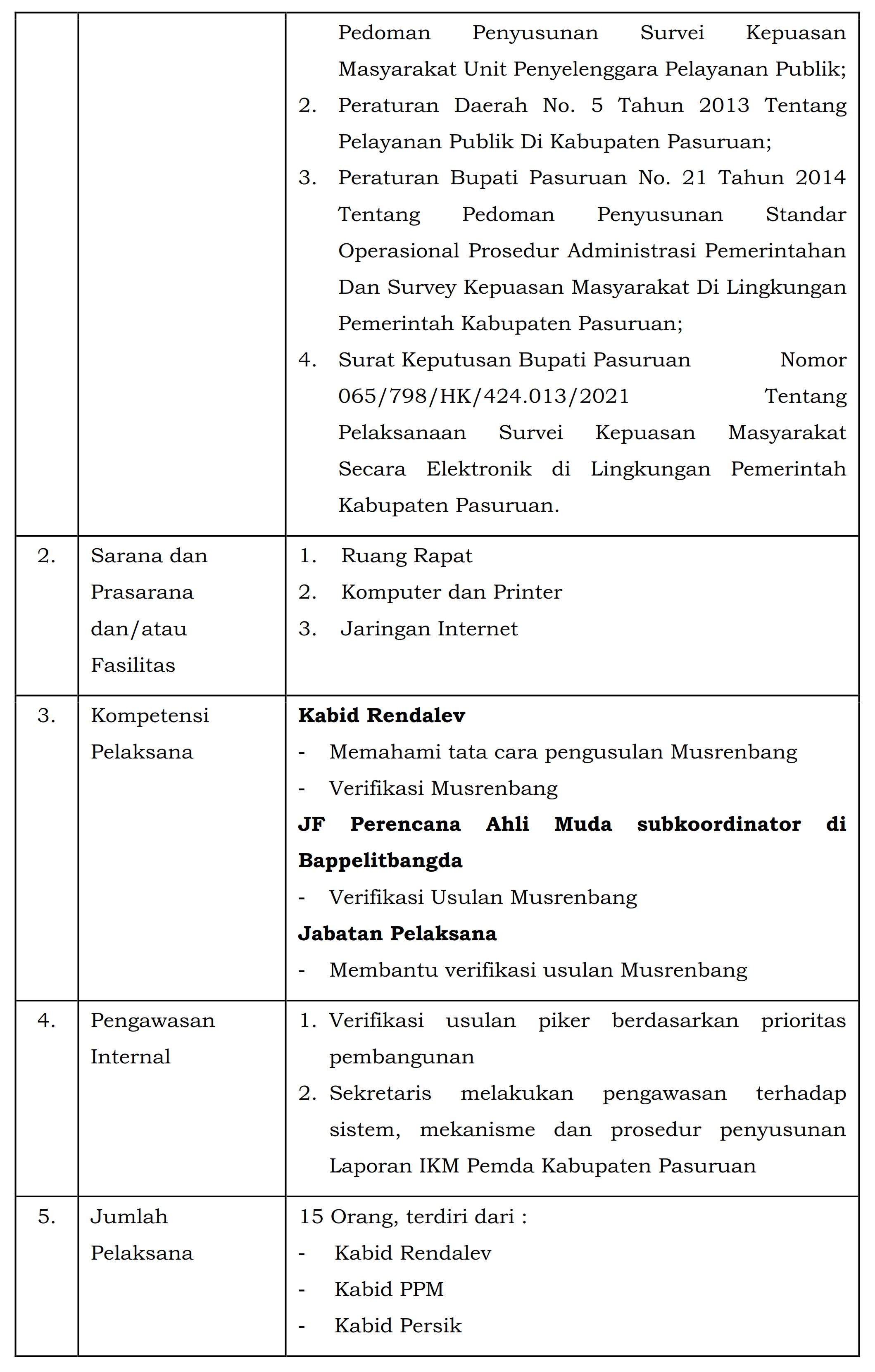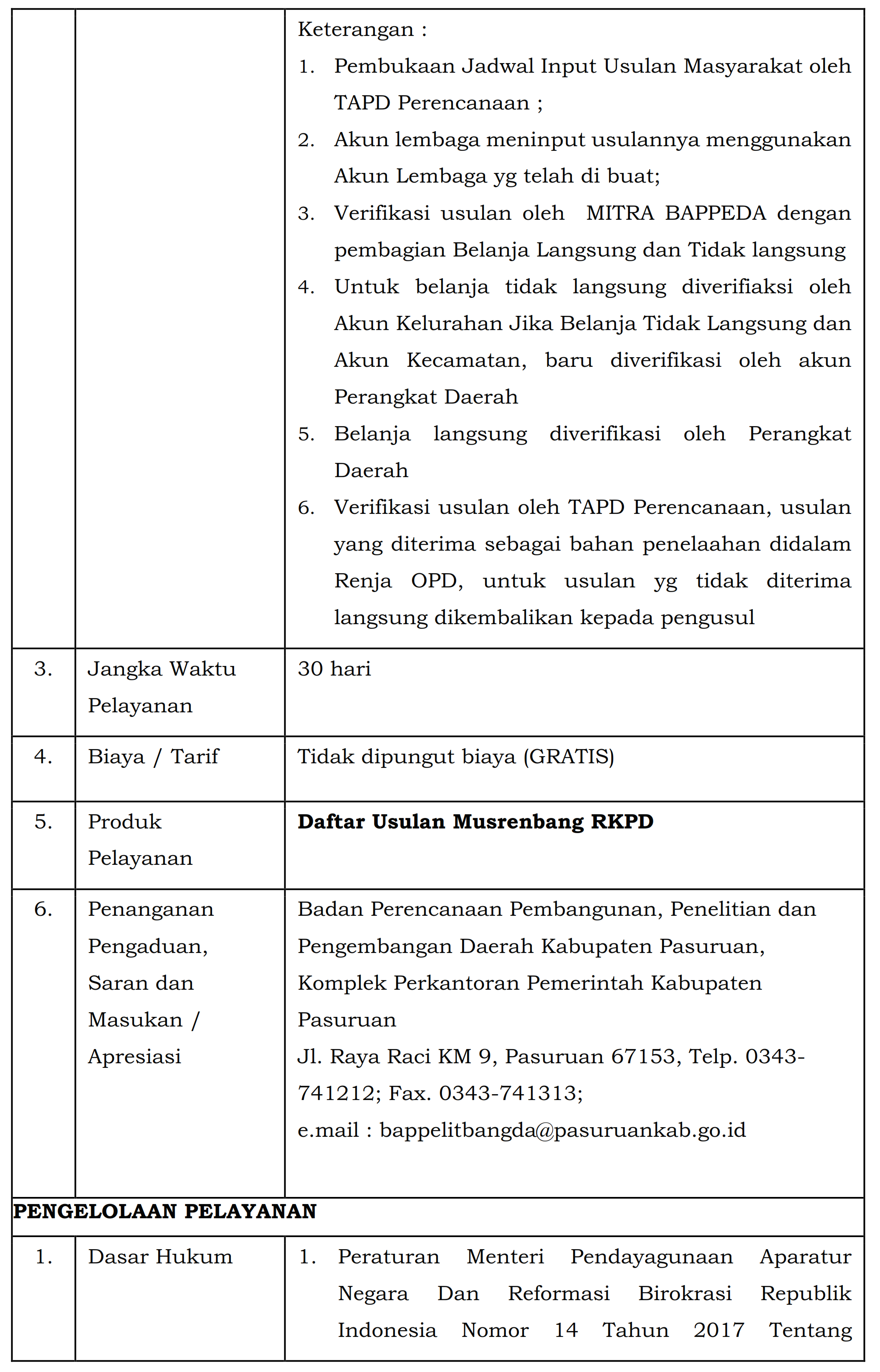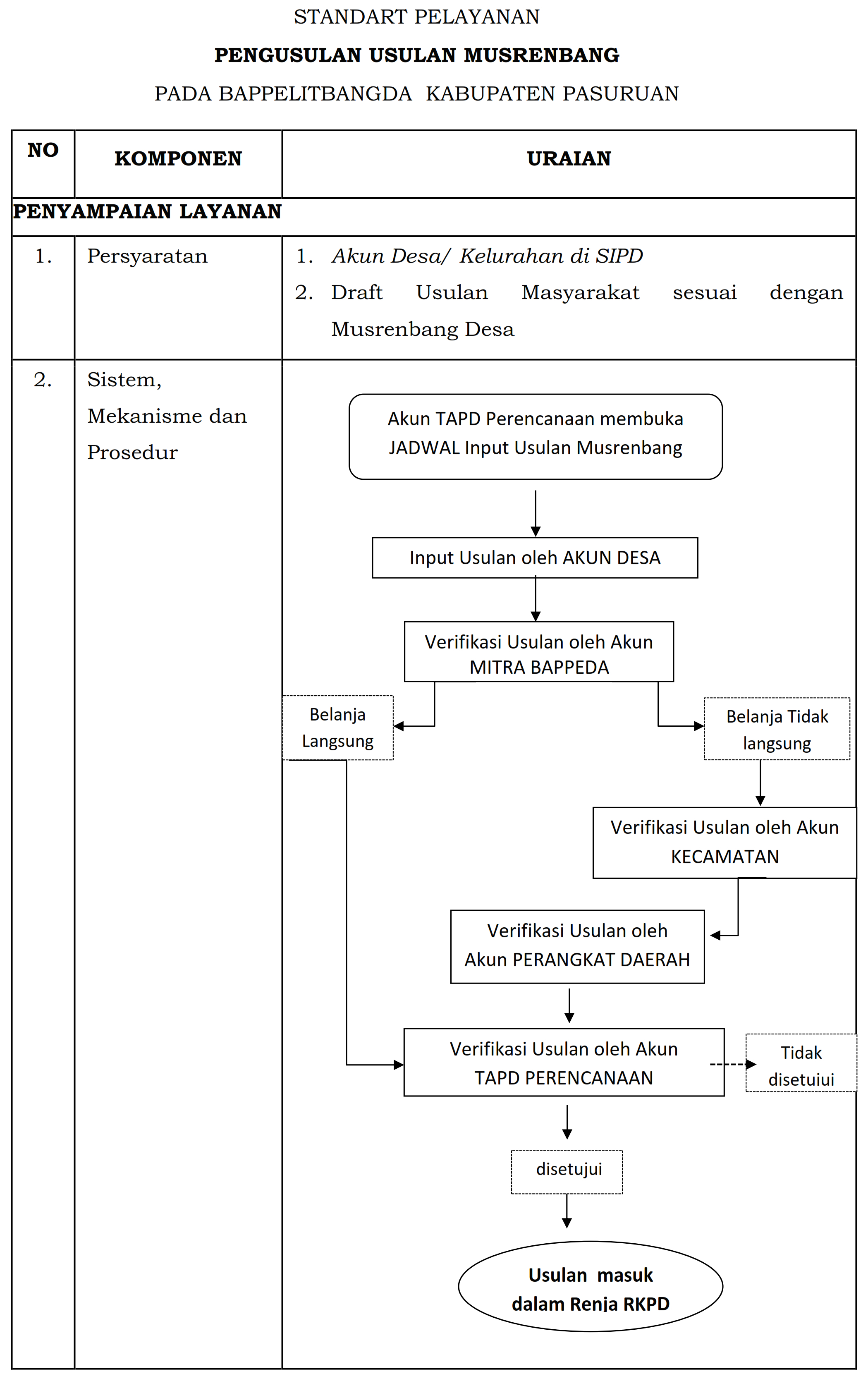 Standart pelayanan Pengusulan Usulan Musrenbang