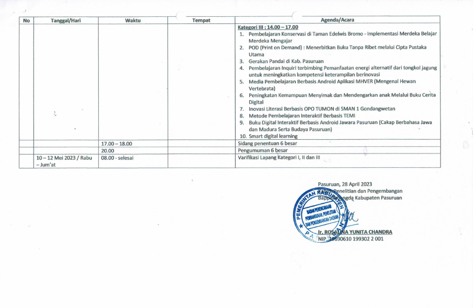 Pengumuman Nominator Lomba Inotek Pasuruan Maslahat Kabupaten Pasuruan Tahun 2023 - BAPPELITBANGDA Kabupaten Pasuruan
